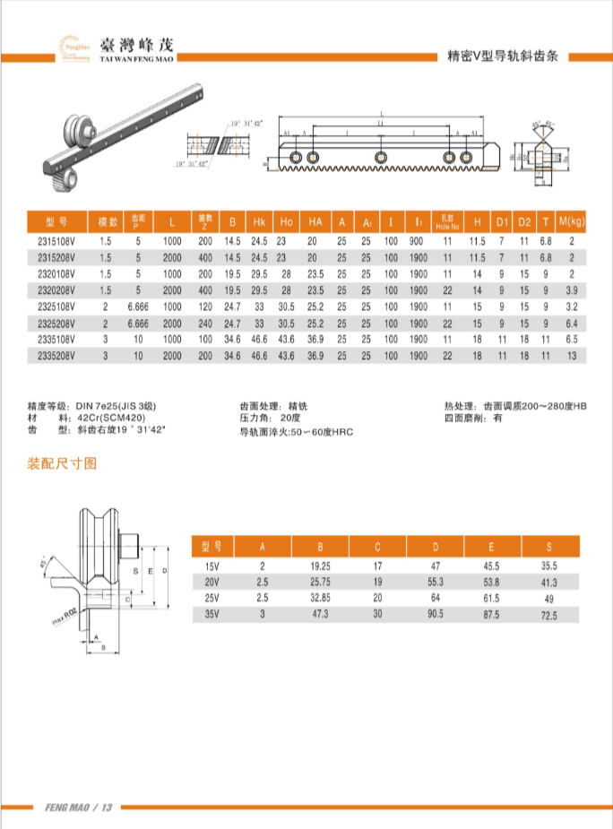 V型導軌斜齒條DIN7級